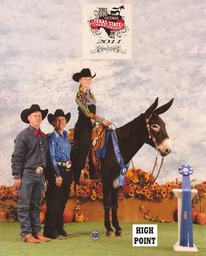 • High Point Training Level/Green: Fort Worth, San Antonio, Southwest Donkey and Mule Spring Show, Texas Shootout, Great Celebration, Southwest Donkey and Mule Society Fall Show, Texas State Championship